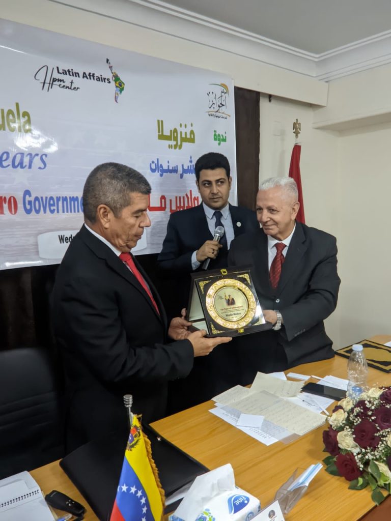 نظم مركز الحوار للدراسات السياسية والإعلامية بالتعاون مع سفارة فنزويلا بالقاهرة ندوة بعنوان: “فنزويلا.. .عشر سنوات من حكومة نيكولاس مادورو: التحديات والإنجازات”، الأربعاء الموافق ٣ مايو ٢٠٢٣، بمقر مركز الحوار بالدقي.